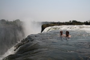 Hubby and I are still in South Africa…… planning to visit Victoria Falls. None of the TV specials I’ve ever seen on this magnificent wonder of nature shows people swimming right on the brink of the falls………… I cannot wait for my turn to try this!!!