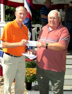 Bishop Hill – John Anderson, of the Bishop Hill Old Settlers Association, presented a check for $1,000 to Steve Morrison, president of the Henry County Genealogical Society, for his research to update the Bishop Hill, Red Oak and Piatt cemeteries.
