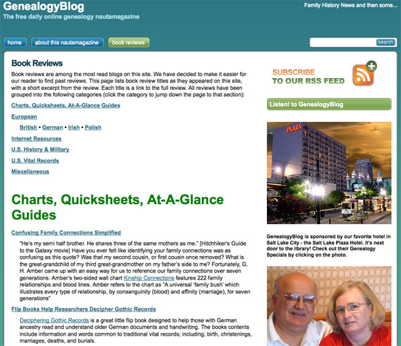 Each review will show a title of the article as it appeared in the blog, and a short extract from the blog about the book, including the actual book title. Both the article title and the book title will serve as links to the full, original review.