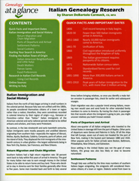 The guide helps the reader begin their search utilizing American sources, tracing towns of origin and finding and searching Italian sources. Interesting topics include such concepts as identifying the patron saints of different towns and using food preferences in research. This guide is great for both the novice and the experienced researcher. Following is a complete topic list for this guide: