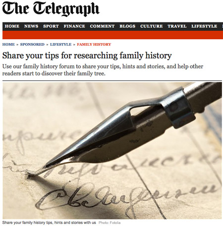 The Telegraph, a British news outlet, in association with Ancestry.co.uk, is inviting readers to share their genealogical research tips in their forum. Here is an excerpt from their invitation article: