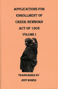 Applications for Enrollment of Creek Newborn Act of 1905 Volume I is available from Family Roots Publishing; Item #: CF9805, Price: $35.28.