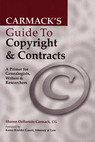 Carmack’s Guide to Copyright & Contracts: A Primer for Genealogists, Writers, and Researchers is available from Family Root Publishing; Item #: GPC883, Price: $17.15.