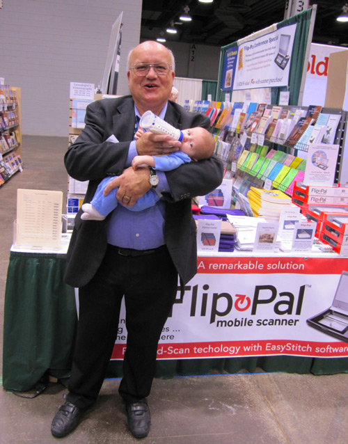 I don’t post many pictures of myself on the blog. But today Diane Miller, with Flip-Pal, came by the booth at the NGS Conference and took a shot of my grandson, Nicholas Meitzler, while I was holding him. This was Nicholas’s first National Genealogical Society Conference. However, it was the sixth genealogy conference he has attended. His first was at 5 days old in Bountiful. He’s now two and a half months old.