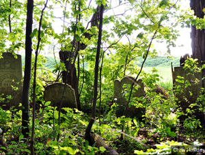 Searching the cemetery lands, White went a little bit off the beaten track and followed the dirt road at the western edge of the cemetery into the nearby woods. As the sun shone through the trees, White saw the silhouette of several tombstones standing along the property’s fence line.