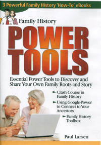 Get all three eBooks on one disk. Order Family History Power Tools: Essential Power Tools to Discover and Share Your Own Family Roots and Story from Family Roots Publishing; Item #: PL06, Price: $58.75.