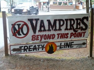 Driving out to the beach, we did drive through the Quileute Indian Reservation (Jacob was a Quileute) and I saw these signs: