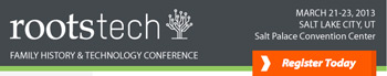 Registration is now live for the 3rd annual RootsTech conference on March 21-23, 2013 in Salt Lake City, UT. With several thousand attendees each of the first two years, the 2013 conference is shaping up to be the biggest and best yet!