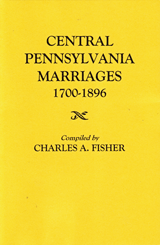 Central Pennsylvania Marriages 1700-1896 is a small straight forward book of marriages as compiled by Charles A. Fisher. Originally compiled and published in 1946, the book was last reprinted in 2005. Apart from the actual entries, the author makes only this one note: