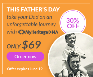 MyHeritage is running a Fathers’s Day promo on their Autosomal DNA test – cutting the price to just $69 until June 19. That’s again the best price that they’ve ever offered. Order 3 kits or more, and they add free shipping. Click on this link.