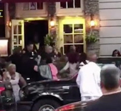 NYPD officers say a scuffle between family and friends attending a wake started inside the George H Weldon Funeral Home on 115th Street and First Avenue in East Harlem around 7:30 p.m. Monday and poured onto the street outside.