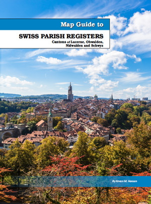 The Map Guide to Swiss Parish Registers series is an out-growth of the very popular Map Guide to German Parish Registers project, which is still in process, but nearing completion. Over the years, we’ve been asked by numerous parties to extend the project to cover other German-speaking European countries. We did that with the publication of Map Guide to Luxembourg Parish Registers in 2016. There are 26 current cantons in Switzerland. Many of them are small, so we plan to publish guides to multiple cantons in a number of the books. For this reason, we expect the entire series to be under 20 volumes.