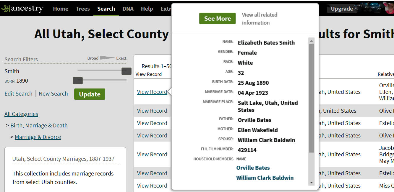 1854-2013 Washington, Marriage Records – Ancestry.com, 10,074,966 records, see http://search.ancestry.com/search/db.aspx?dbid=2378.