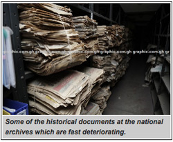Ghana risks losing its vital historical documents at the Public Records and Archives Administration Department (PRAAD) and the few research libraries in the country as a result of the deplorable state of the facilities. Some of the national records, dating from independence, are discoloured and almost brittle.