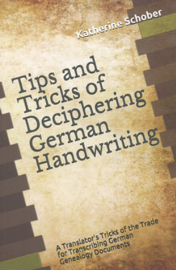 Tips and Tricks of Deciphering German Handwriting – A Translator’s Tricks of the Trade for Translating German Genealogy Documents; by Katherine Schober; 2018; Soft-Cover; 105 pp; 6×9; ISBN 9781980281528 Item#: KS01