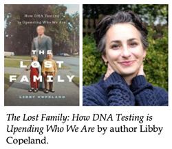May 14, 2020—Boston, Massachusetts—On Wednesday, May 20, at 6:00 p.m. EDST, journalist Libby Copeland will discuss the impact of DNA testing on the American family in a presentation of her new book, The Lost Family: How DNA Testing is Upending Who We Are. The evening event will include a conversation with Amy Dockser Marcus, a health and science reporter for the Wall Street Journal, who has reported in depth on the topic.