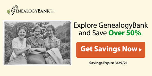 We’re excited to share a Special Offer to our Genealogy Newsline & GenealogyBlog readers: Over 50% off on a subscription to GenealogyBank, offer valid through this Monday, 03/29/2021. An annual subscription for just $48.95! Get 54% off on a two-year sub., saving even more!