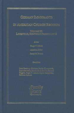 German Immigrants in American Church Records – Vol. 35: Louisville, Kentucky Protestant II; Edited by Roger P. Minert; Ph.D., A.G.; October 2021; 476 pp; Hard Cover; Every-name index; Acid Free Paper; ISBN 978-1-62859-306-8; Item #FR0685; $119.95 (less 2% discount if ordered online at the FRPC website).